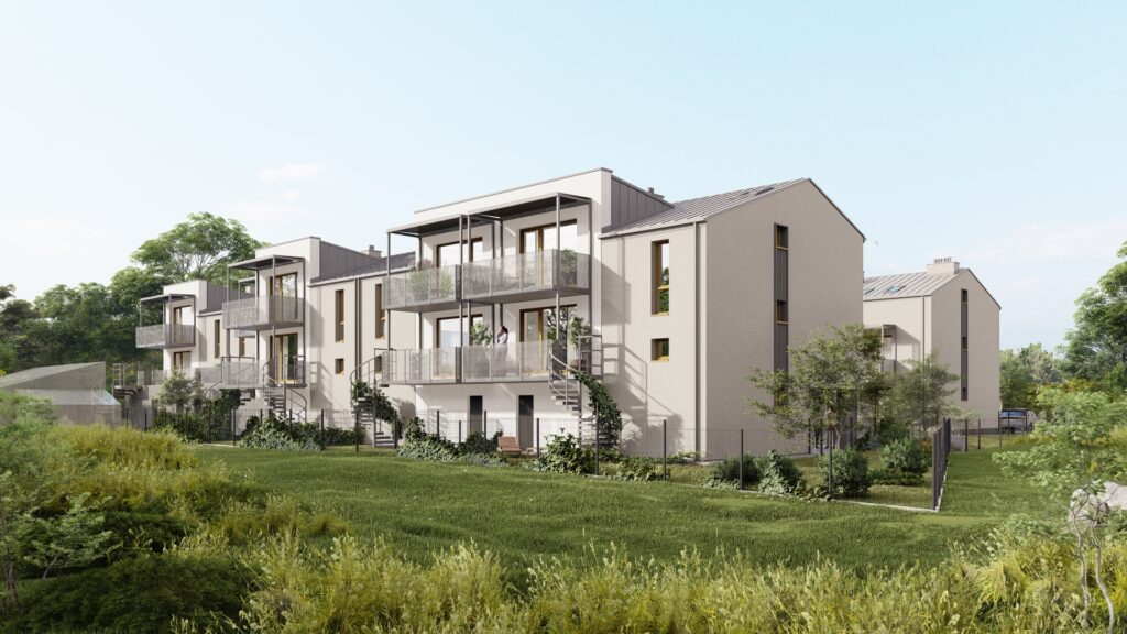 Eleganckie budynki o minimalistycznym designie, zaprojektowane z myślą o funkcjonalności i estetyce.